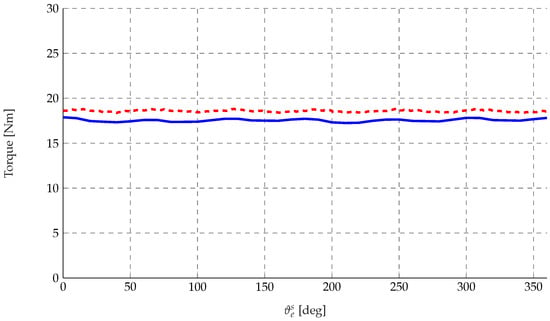 Finally, it should be noted that a small difference with respect to the error specified in Section 4.2 is present, since in the mapping procedure for this diagram, the rotor is kept still while the stator currents are changed; meanwhile, the error reported in Figure 14 refers to the average torque values from a full rotation.