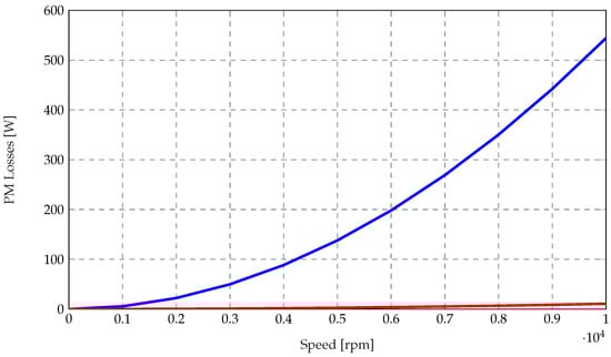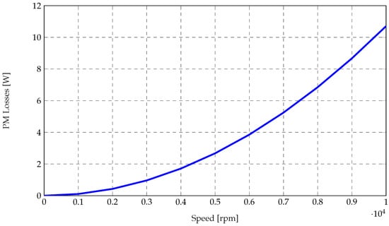 Regarding the FSPM motor slot/pole configuration, in order to limit the excitation fundamental frequency at a given speed, configurations with a smaller number of slots and poles are preferable for high-speed applications. Only a limited number of slot/pole combinations are feasible. Although the minimum number of stator slots is six, as shown in [9], this configuration is not suitable for high-speed applications due to the resulting unbalanced back-EMF waveform, which leads to increased harmonic losses, as well as to the presence of unbalanced radial forces acting on the rotor. The next feasible slot number is twelve, with a minimum of ten rotor teeth. This configuration is the most commonly adopted for this type of machine. Although it is not the optimal one in terms of torque density—which can be improved by using alternative stator teeth and magnet configurations [10,11]—the 12/10 two-tooth layout is selected in this work for the sake of simplicity. Additionally, alternative permanent magnet configurations for outer-rotor in-wheel applications have been investigated in [12].