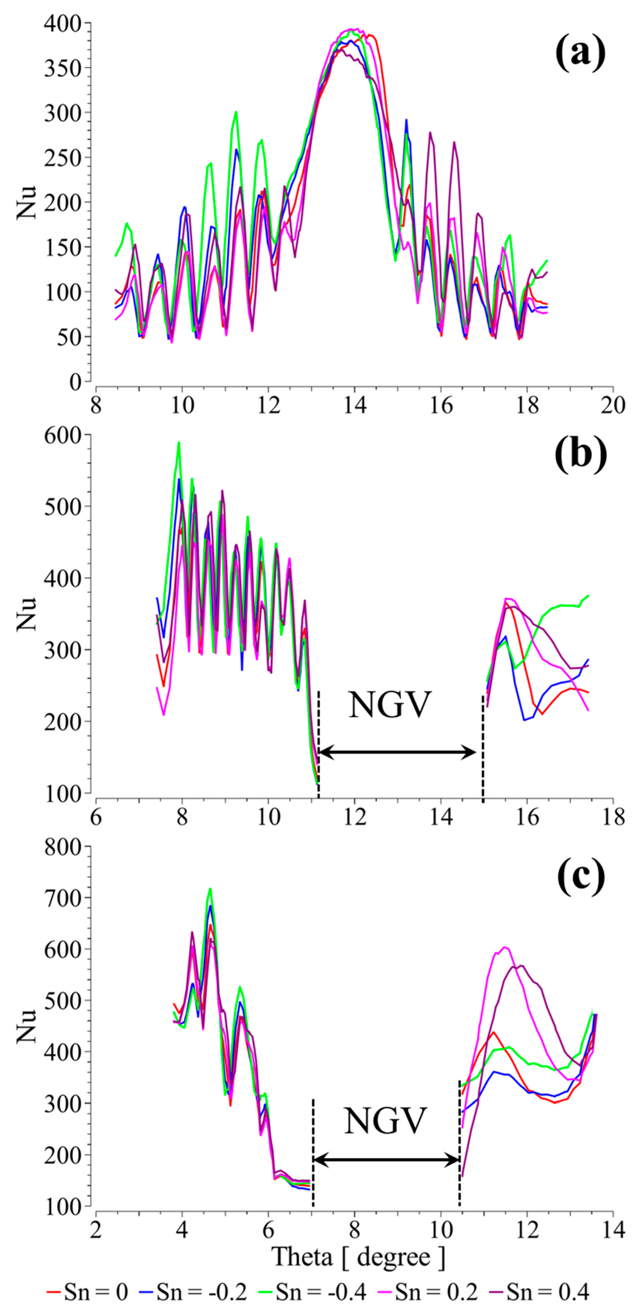 3.5. Effect of the Swirl on the Hub Heat Transfer