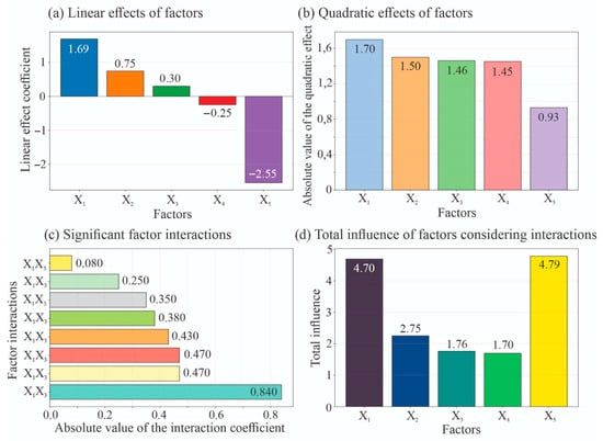 Verification experiments. Five independent confirmatory experiments were performed under the optimal parameters identified in Section 4.5 (n* = 2500 rpm, T* = 105 s, kₘ* = 0.30, kᵣ* ≈ 0 mm, kzaz* ≈ 6.1 mm). Table 5 presents the comparison between the predicted values from the regression models and the experimental results.