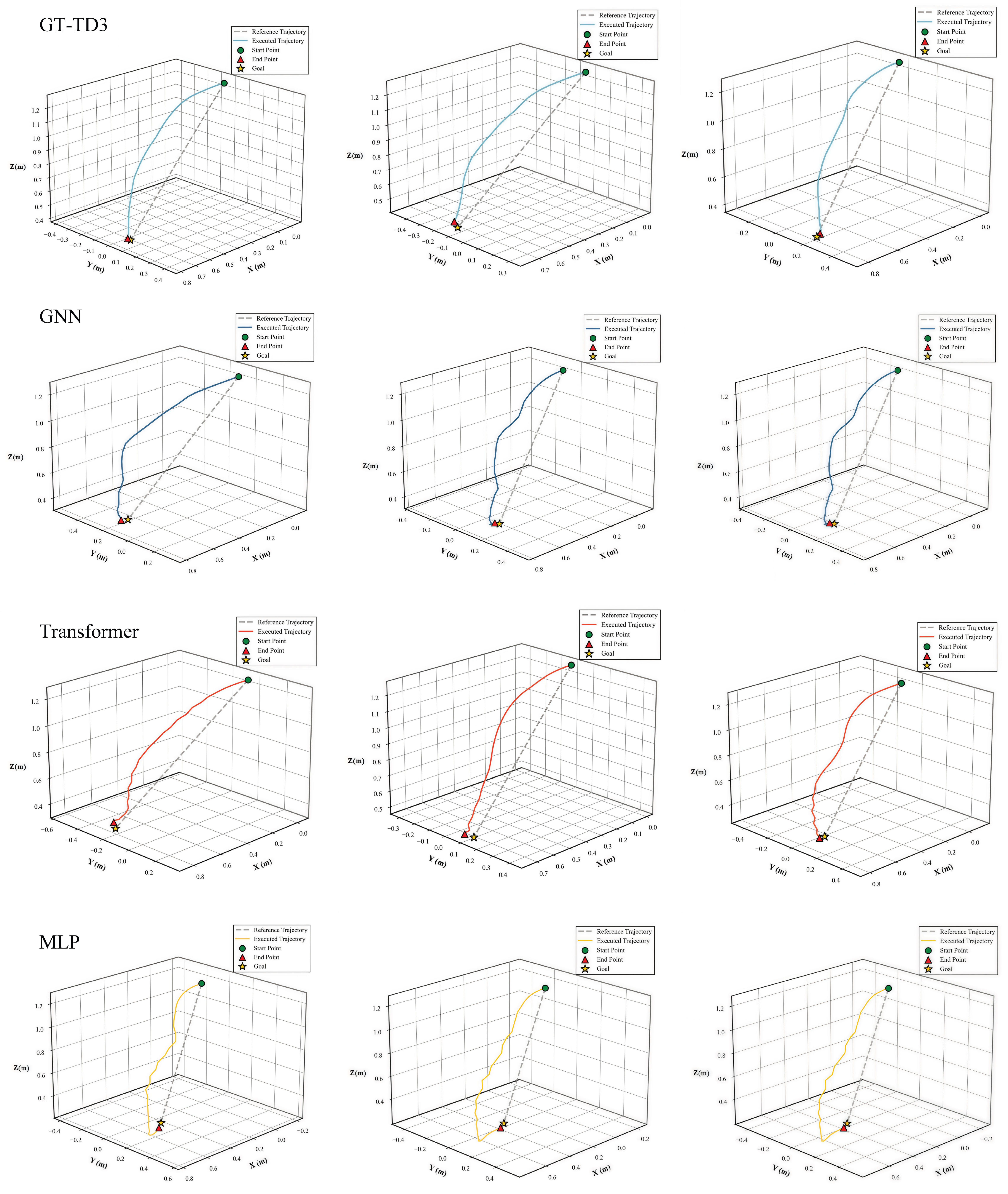 Miao H, Hou H, Zhu Z, Chao Z, Zhang R. GT-TD3: A Kinematics-Aware Graph-Transformer Framework for Stable Trajectory Tracking of High-Degree-of-Freedom (DOF) Manipulators. Machines. 2026; 14(4):397. https://doi.org/10.3390/machines14040397