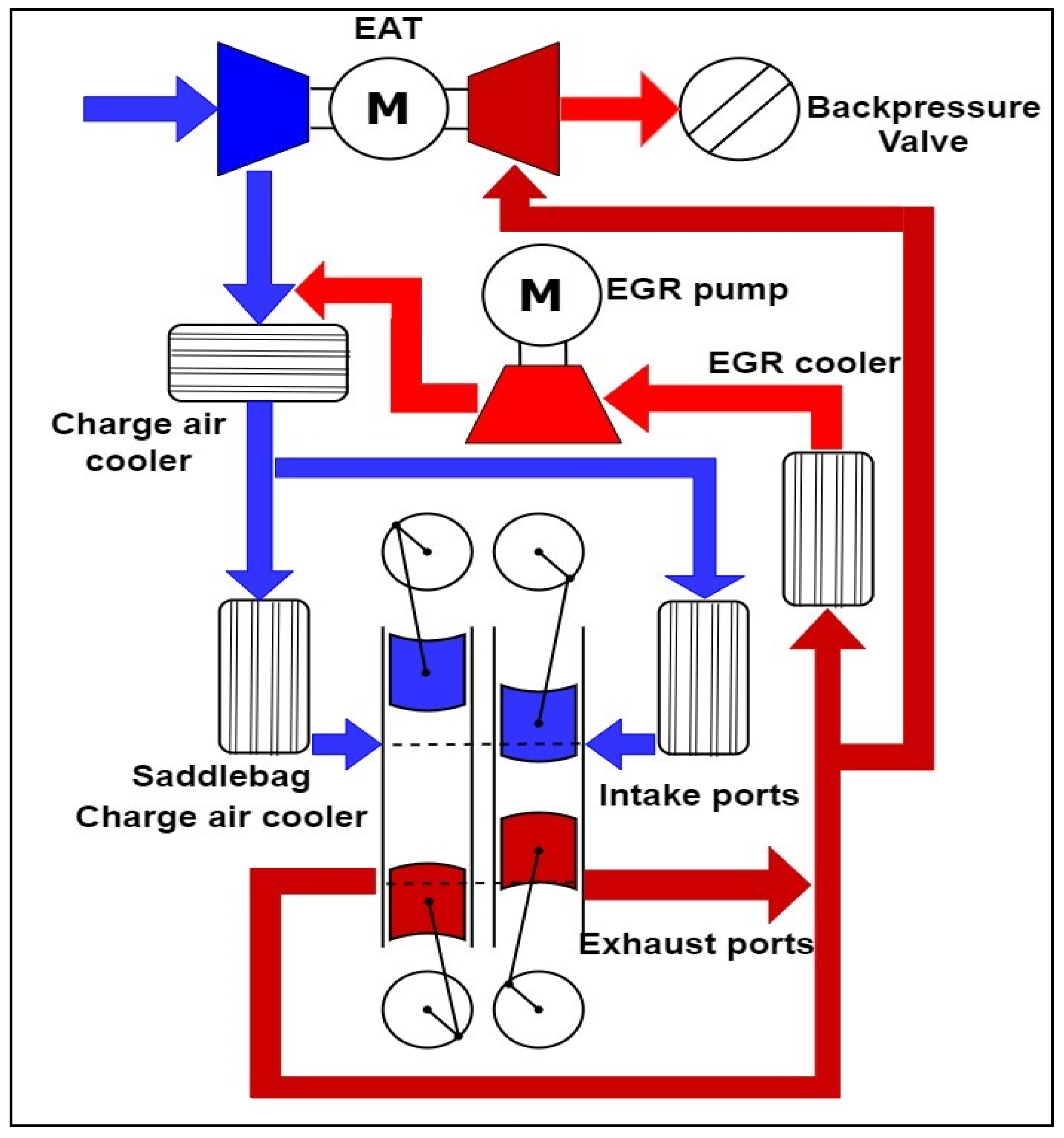 Table 1. The engine’s airpath has an EAT, an EGR pump, and a backpressure valve to control the airflow. Both the EAT and the EGR ran on a 48 V DC architecture, with the EAT capable of providing a peak power assist of 15 kW.