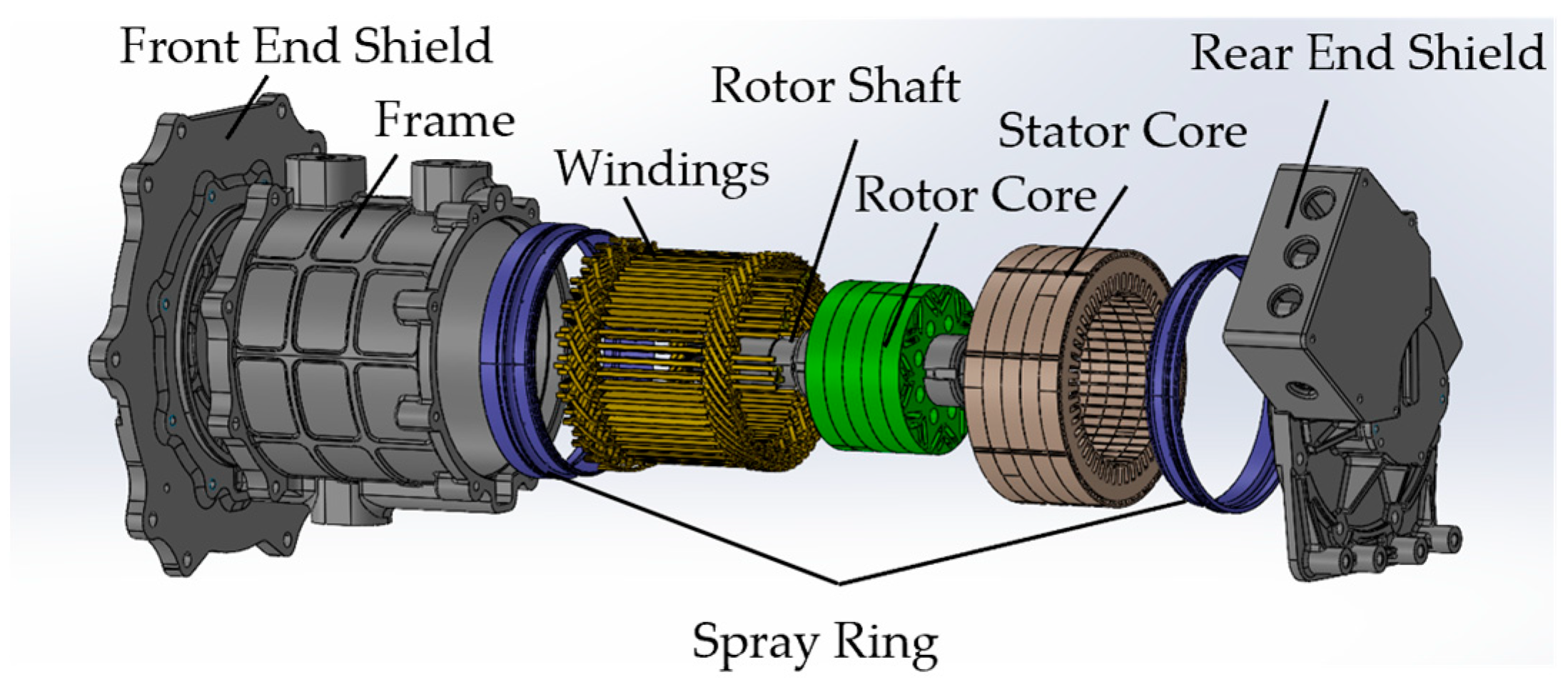 - Chen, L.; Yan, Y. Power Loss Analysis and Cooling Design of Flat Wire Motor Winding for Vehicle Electrical Motor. J. Shanghai Univ. Eng. Sci. 2023, 37, 155–163. [Google Scholar] [CrossRef]