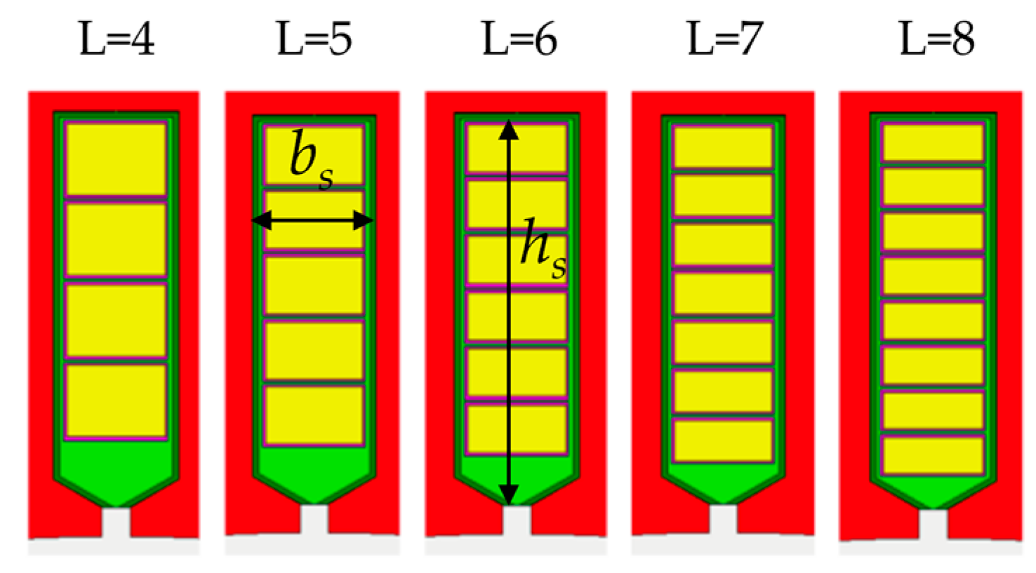 4.1. Effect of the Number of Flat-Wire Winding Layers