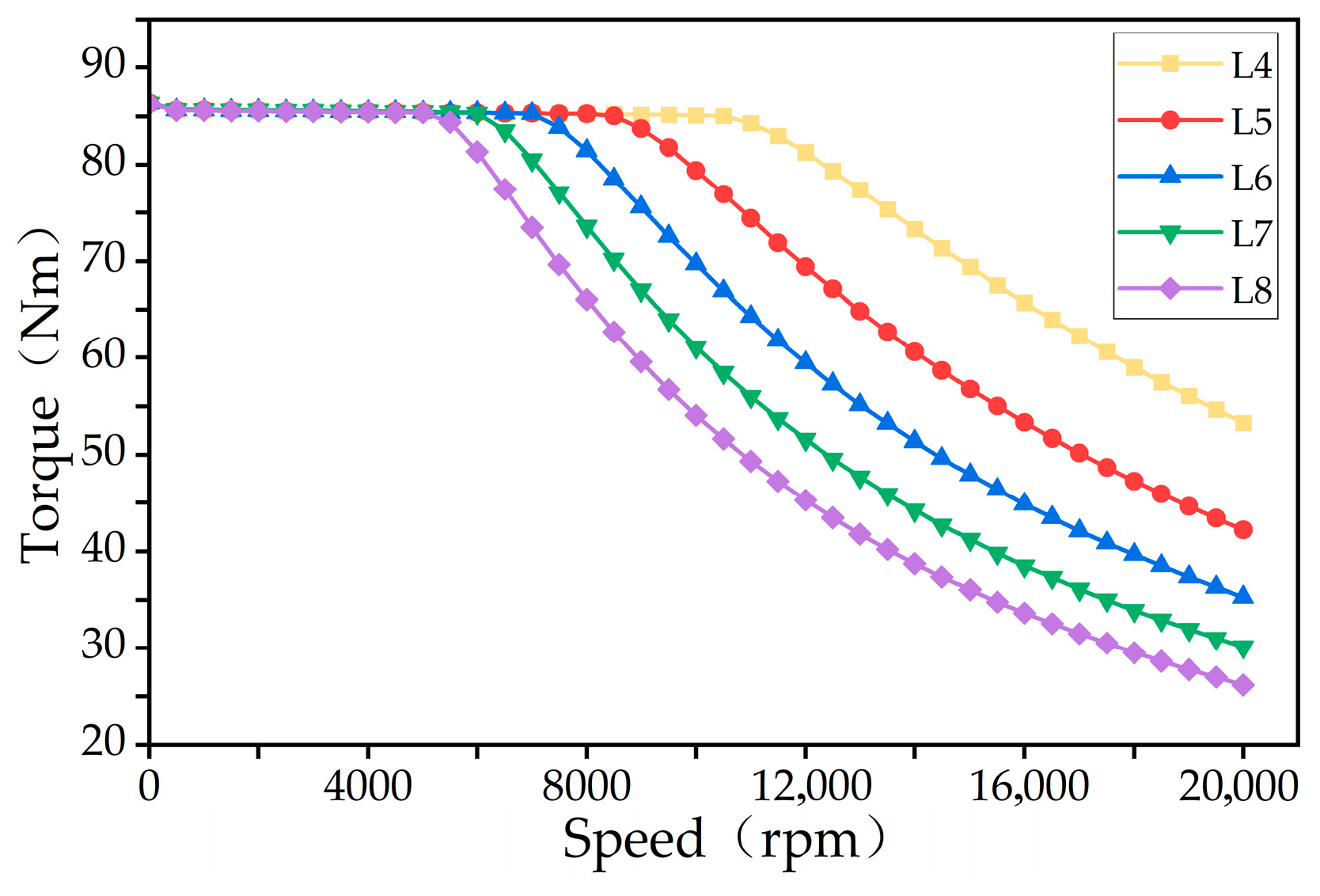 4.1.2. Speed–Torque Characteristic Analysis