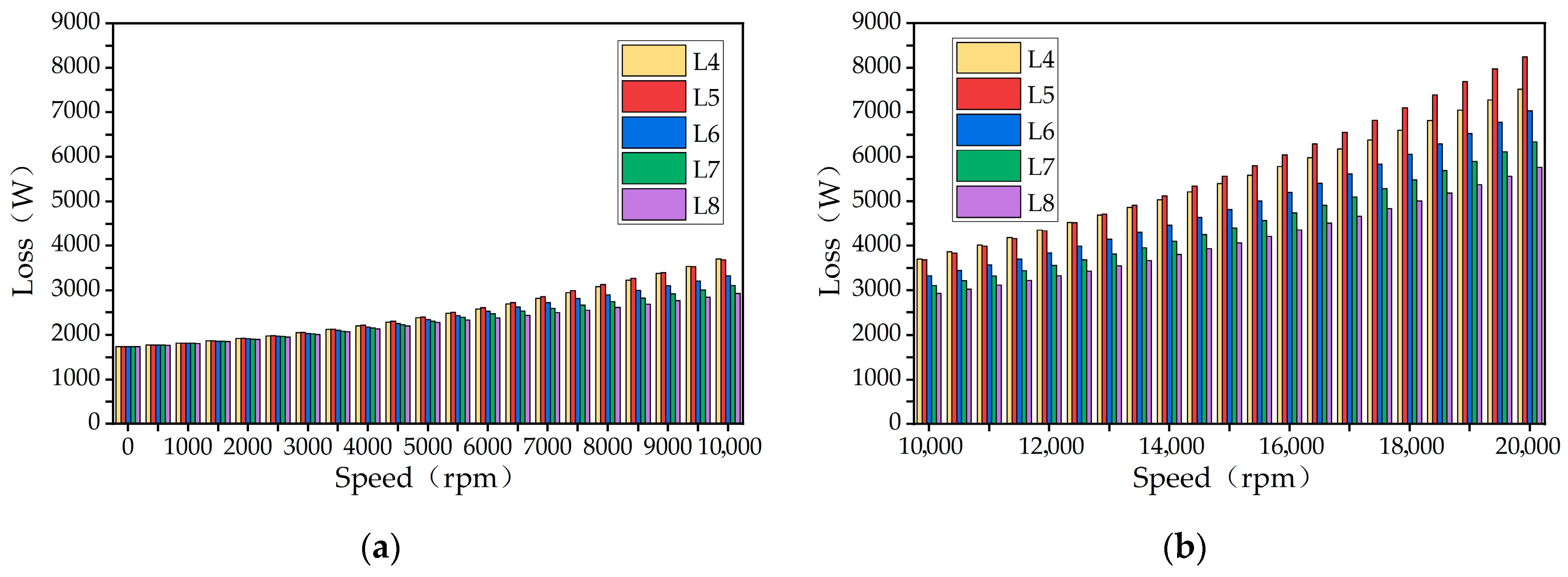 4.1.3. Speed–Electromagnetic Loss Characteristic Analysis