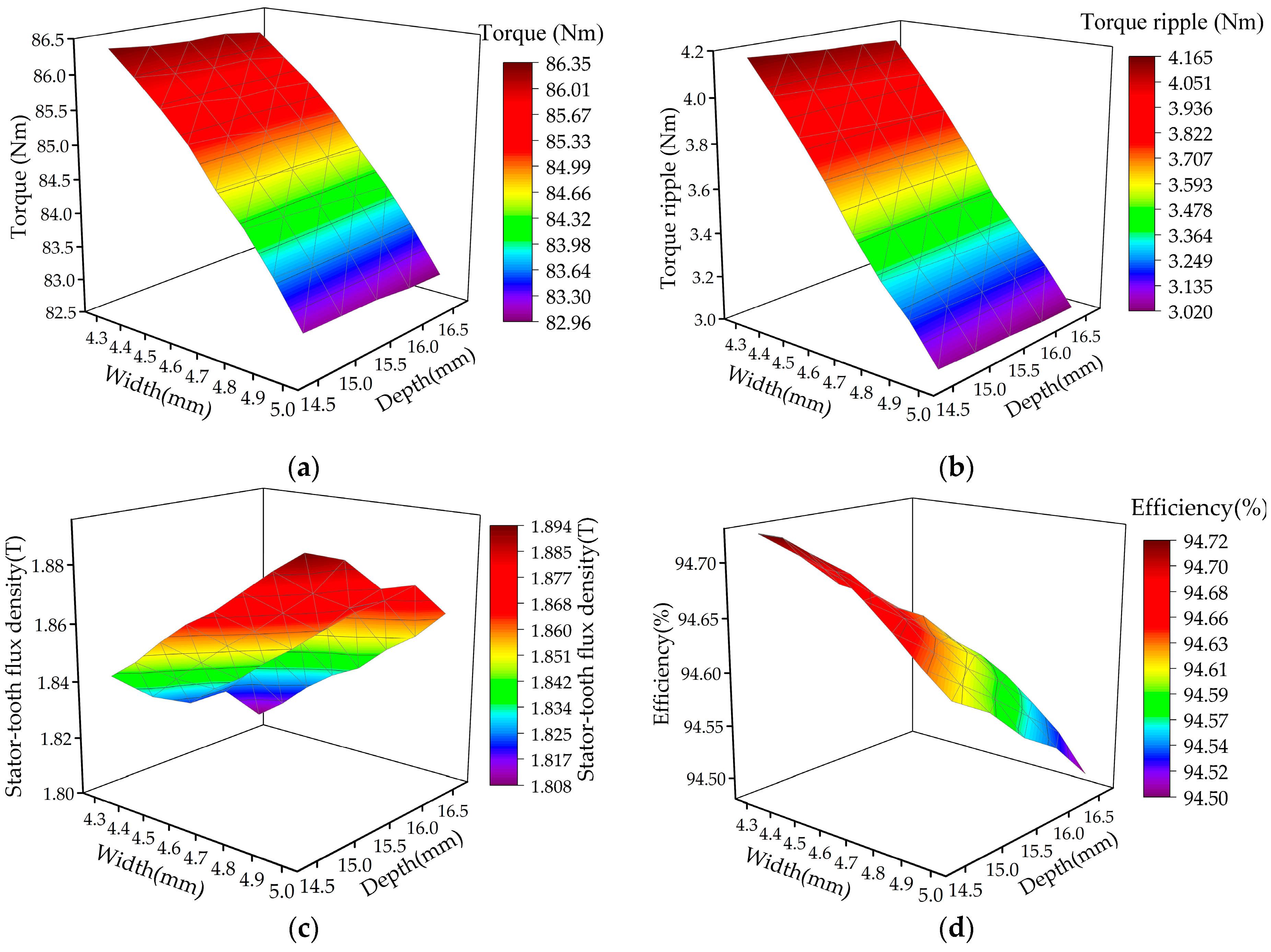 4.2. Coupled Effects of Stator Slot Dimensions
