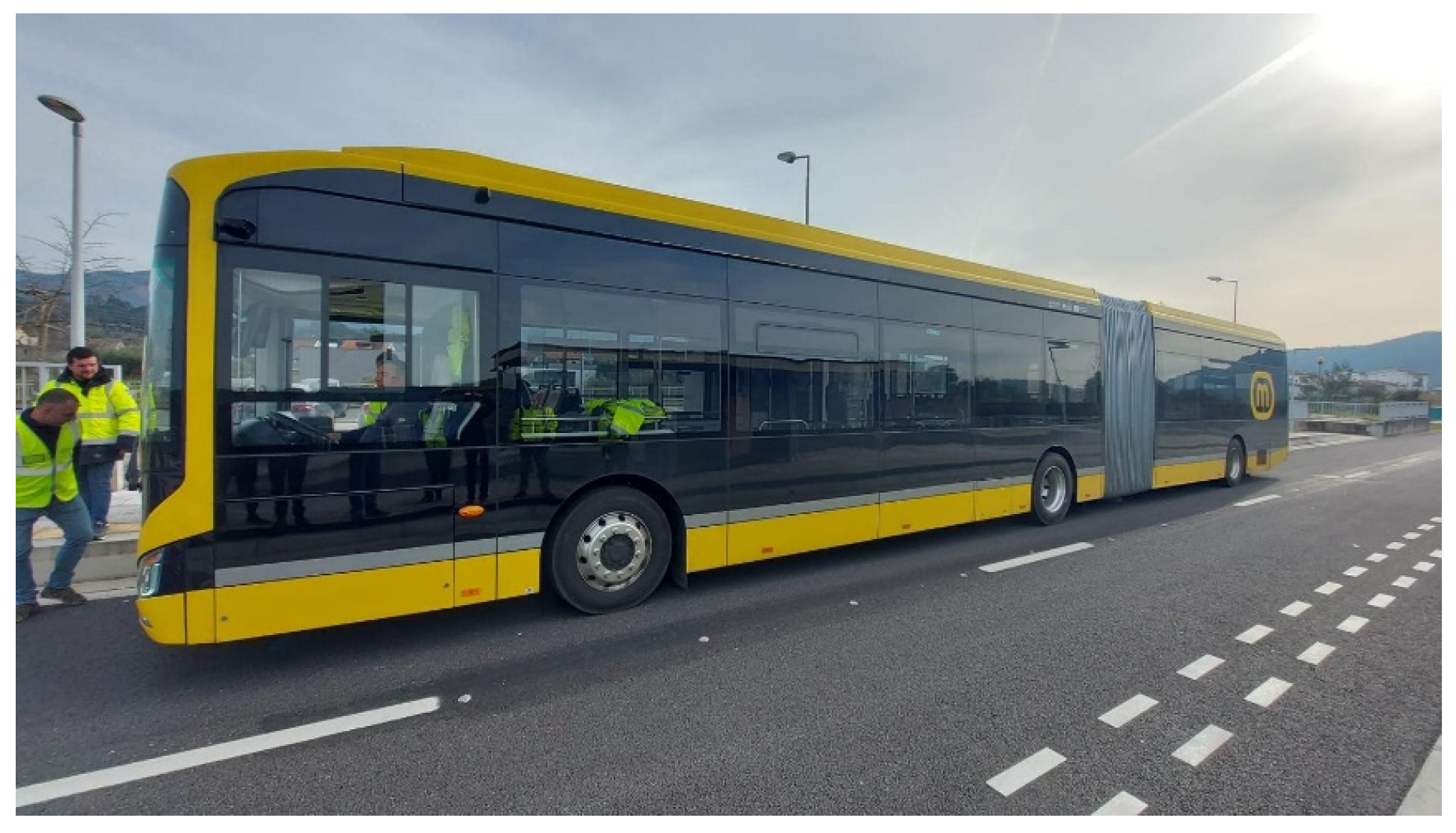 37]. The Mondego mobility system is a road mode sustainable mobility system using fully electric articulated metrobuses on dedicated channels between Coimbra, Miranda do Corvo and Lousã. The MMS consists of 35 units of 135-passenger capacity electric buses. Along the 42 km long route, 42 stations (see