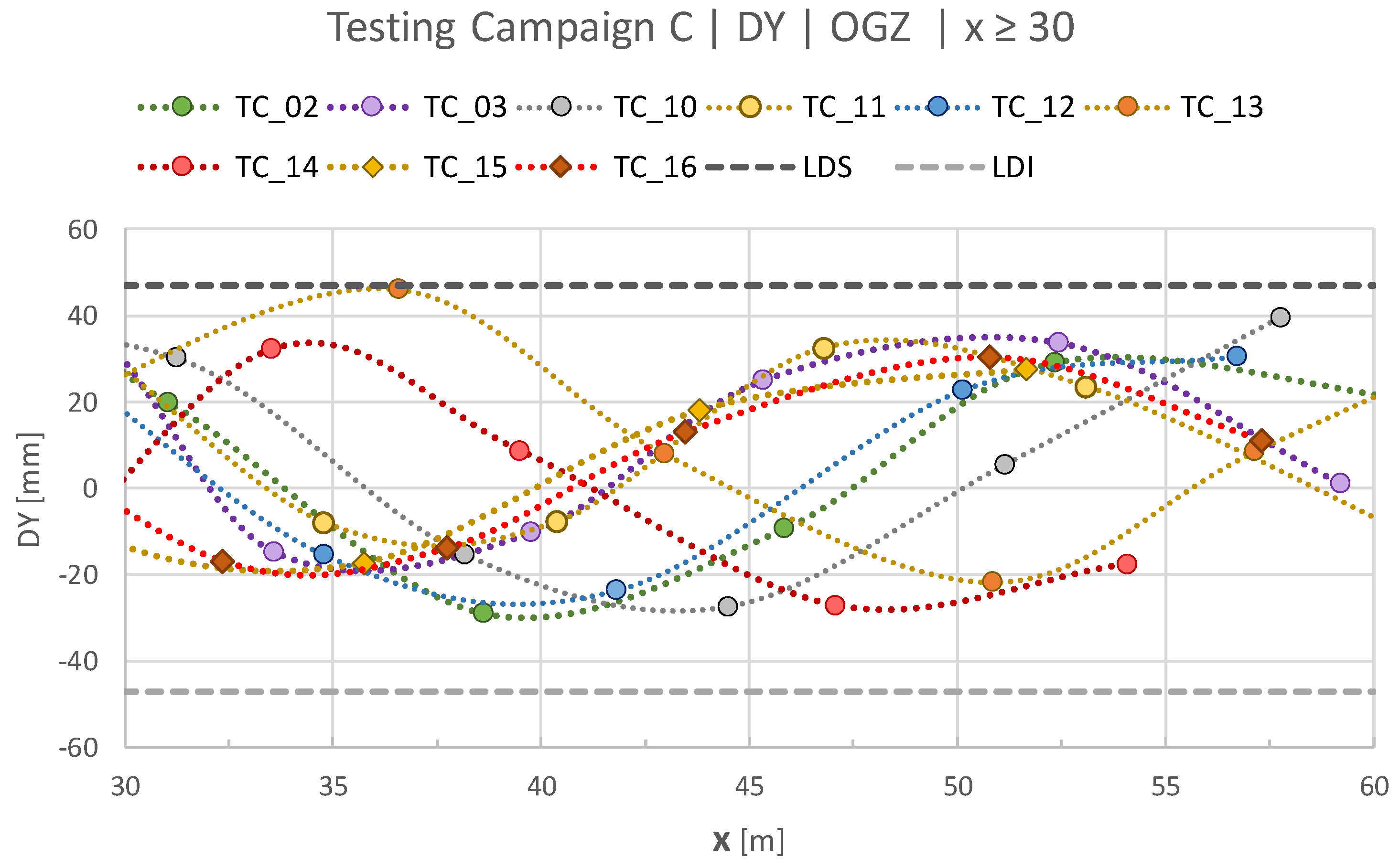 Measured deviations DY and admissible limits for campaign C (upper: LDS; lower: LDI).