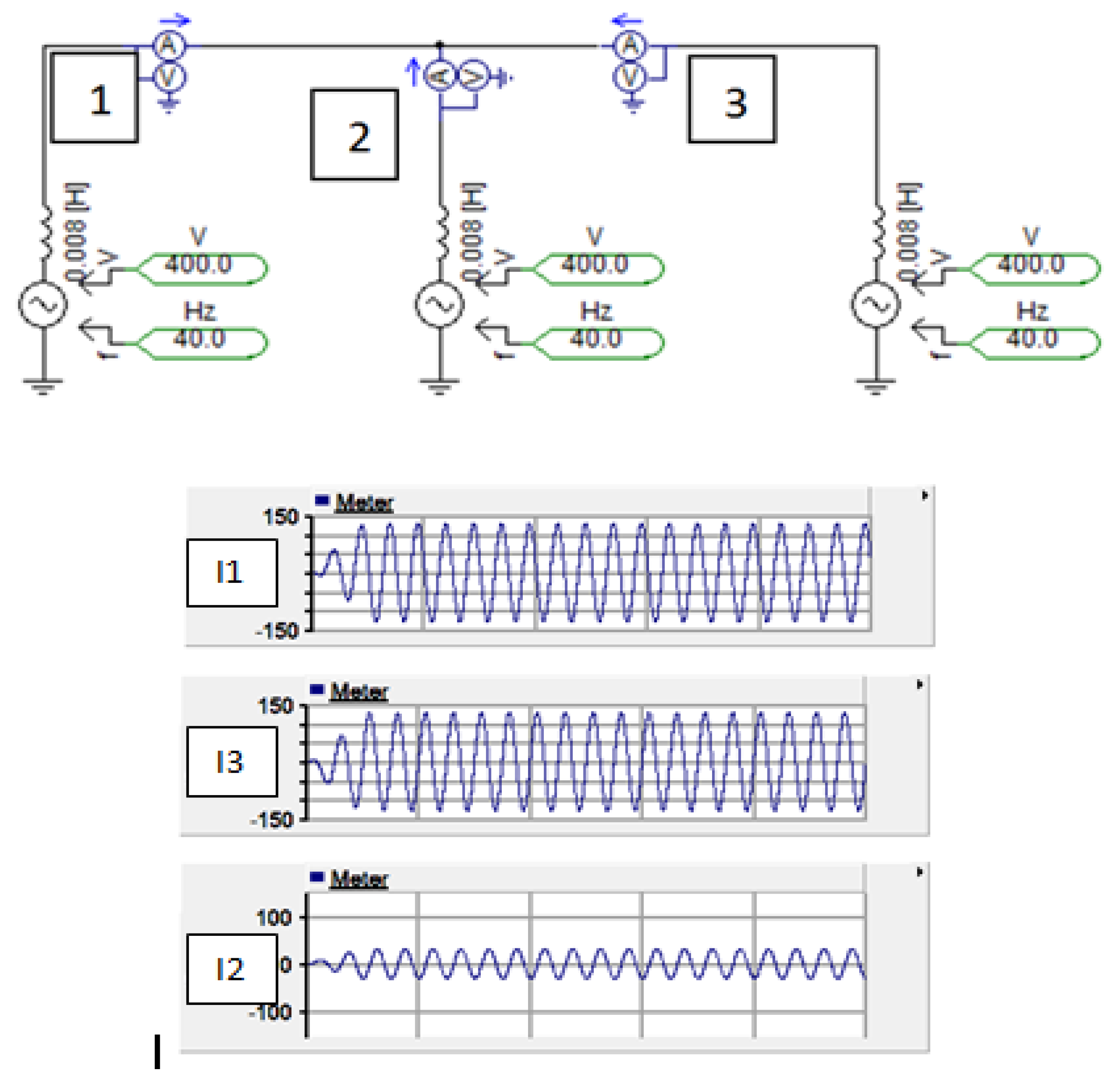 At no load, the adjacent coils, which belong to the same phase, are connected in parallel. The induced FEM are not synchronous and circulating currents exist. In this example, three coils are connected (1, 2, and 3) and the circulating currents I1, I2, and I3 are plotted. They can be as high as 30% of the rated current and are not visible in power supply lines.