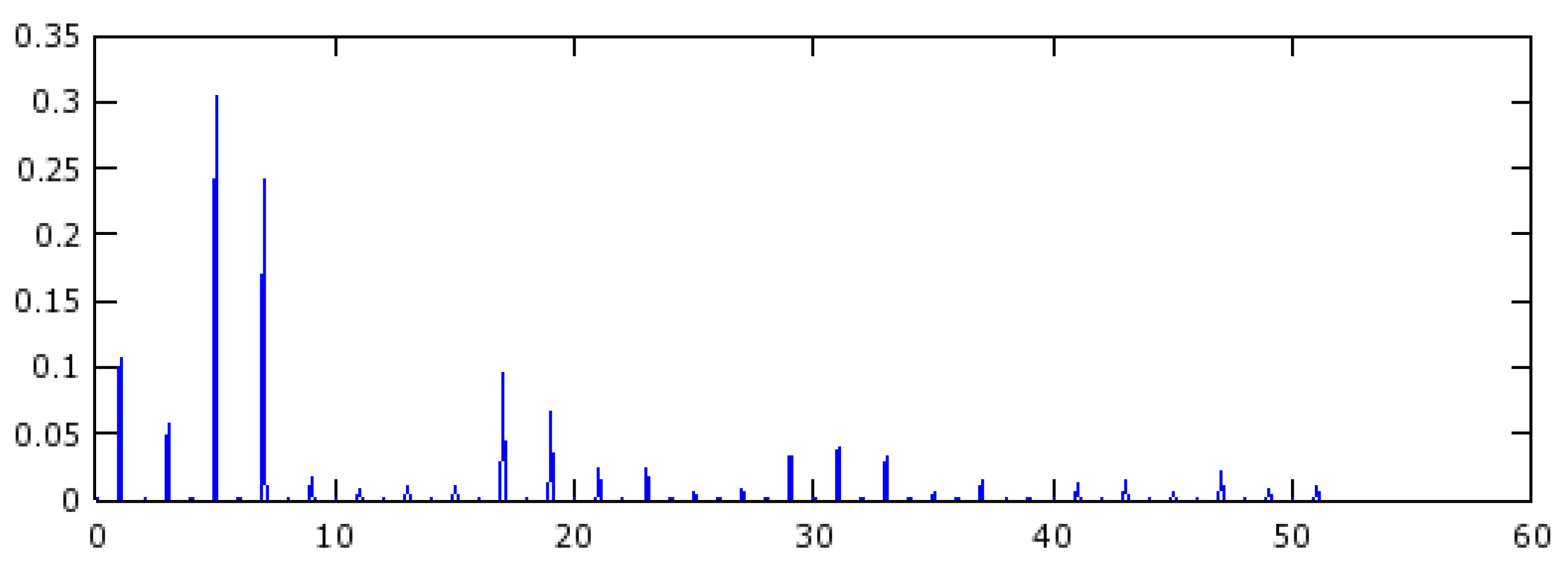 Figure 17. As it is expected, the harmonics five and seven are the most important harmonics as they provide a machine with 10 poles and a machine with 14 poles, the harmonics one and three are not negligible.