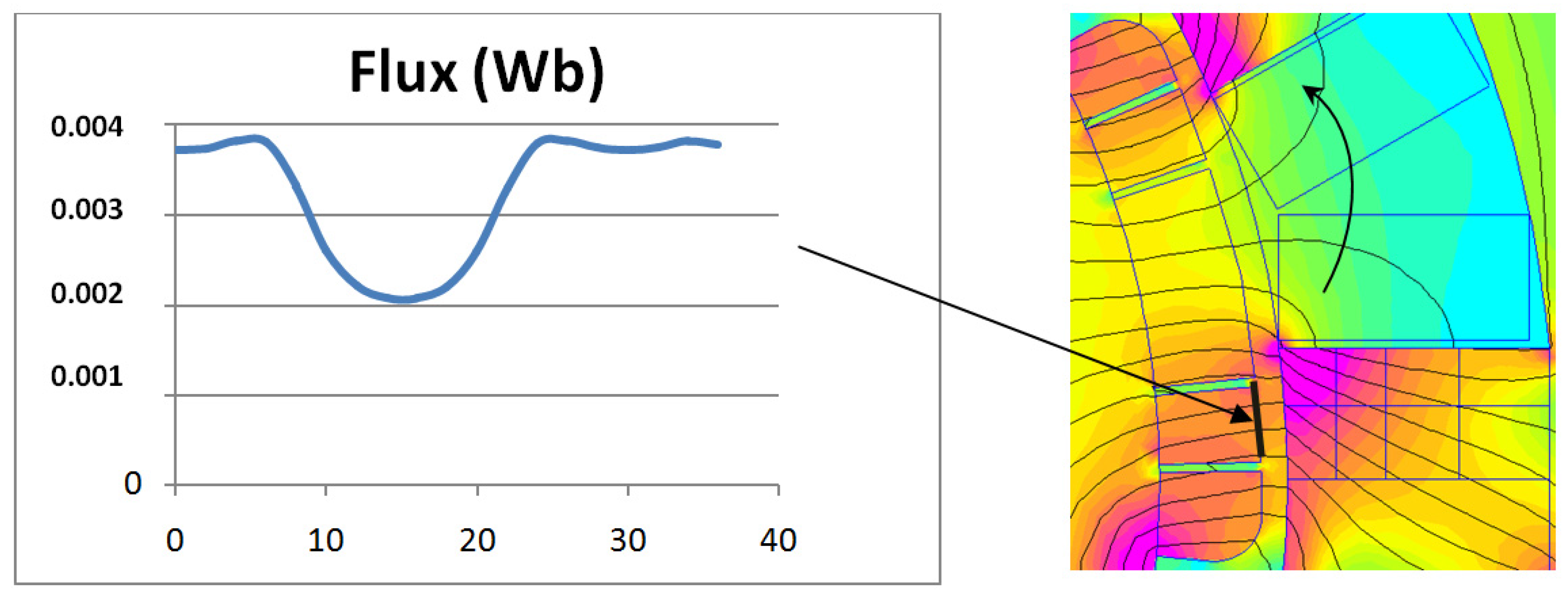 Figure 14). This leakage flux, similar to zigzag leakage flux, has a second effect when the slots are open; the magnetic flux in the tooth has a rotational behavior.
