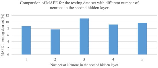 Comparison of MAPEs in testing set with different number of neurons in the second hidden layer.
