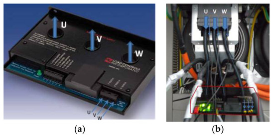 (a) Power sensor type UPC-E; (b) Sensor installation on the plate motor.