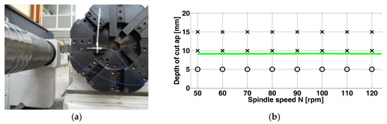 - Urbikain, G.; Fernandez, A.; López de Lacalle, L.N.; Gutierrez, M.E. Stability lobes for general turning operations with slender tools in the tangential direction. Int. J. Mach. Tools Manuf. 2013, 67, 35–44. [Google Scholar] [CrossRef]
