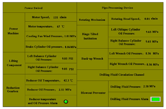 The monitoring parameters of the oil derrick and driller control room are presented in Figure 5.
