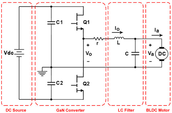 Figure 2. The half-bridge GaN-based DC-DC converter is used as an intermediate level between the power source and BLDC motor to control the armature terminal voltage and consequently the speed of the BLDC motor.