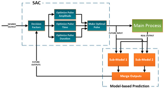 Figure 4. SAC helps MPC to find the optimal control value by comparing the desired output with the present one using the predefined decision factors as a look-up table (LUT). After the parameter is estimated, the optimal amplitude, time, and duration of the controlled variable are found using a set of algorithms. In this way, SAC calculates the optimal value for MPC implementation.
