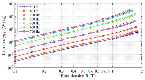 2. Eggers, D.; Steentjes, S.; Hameyer, K. Advanced Iron-Loss Estimation for Nonlinear Material Behavior. IEEE Trans. Magn. 2012, 48, 3021–3024. [Google Scholar] [CrossRef]