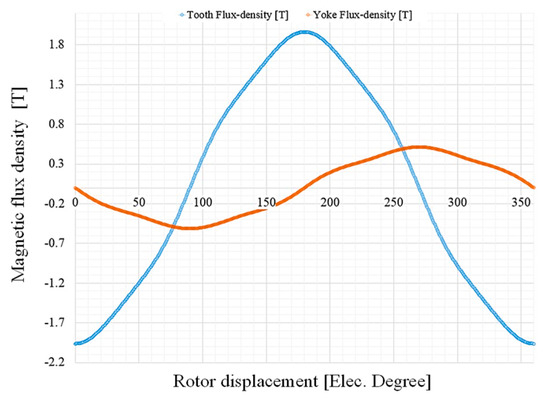 Figure 3. Magnetic flux density distribution using Equations (17) and (18) for tooth and yoke of stator.