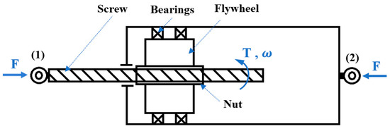 where is the pitch of the ball-screw assembly; and are the applied force on the terminals and the reaction torque on the screw, respectively; is the angular velocity of the screw; and is the mass moment of inertia of the ball-screw inerter.