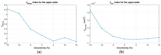Indices for the upper plate in the presence of uncertainties in the structural parameters: (a) ; and (b) .