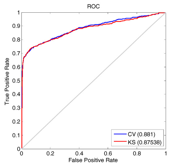 The ROC curve for results calculated using the proposed method and KS statistic as metric.