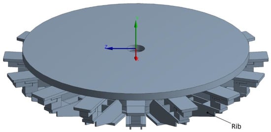 The Transfer Machine with 15 divisions is represented in Figure 14: it has six more divisions, thus, if compared to the same machine with nine divisions, a greater diameter (Dout = 2940 mm) and one more component (stiffening rib) under the support.