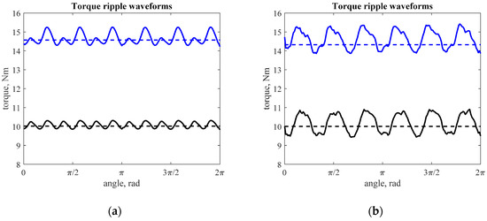 Torque ripple for the DW Mot242 (a) and for the CW Mot63 (b) machines at rated current and 1.5 overload.