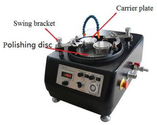In addition to the FE simulations that verified the occurrence of over-polishing of specimen edge, annular polishing experiments of SiC were also carried out to further verify the derived model of material removal presented in Equation (8). All the annular polishing experiments were performed by using the UNIPOL-802 precision auto lapping and polishing machine, as shown in Figure 6. The specific parameters used in the annular polishing experiments were: That the velocities of the polyurethane polishing pad and specimen were the same at 100 r/min, the polishing time was 60 min, and a diamond suspension solution was used. After polishing, the obtained surface was measured by using a surface profiler.