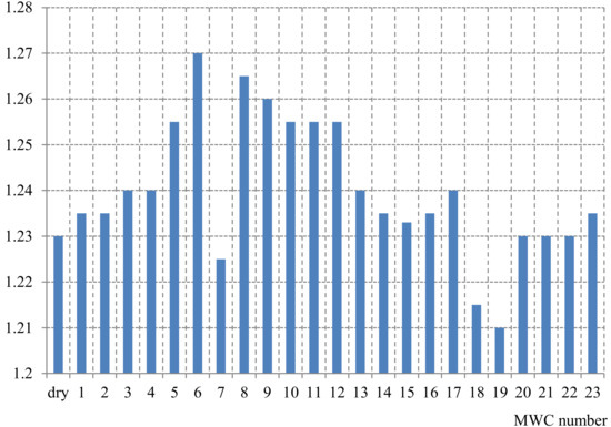The friction coefficients in steel rolling with various MWC, calculated by the Formulas (4)–(9), are shown in Table 4.