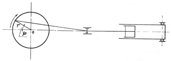 As an example, we can consider the pump in the delivery phase (Figure 1) with = const. If the obliquity of the connecting rod is neglected, the stroke s of the piston is given by