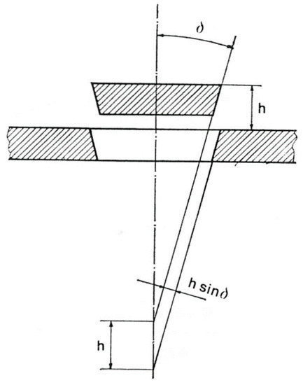 If h is the height at the instant t, the angle of the seat and l the peripheral development of the hole (Figure 2), the cross-section f of the latter will be, at the instant t,