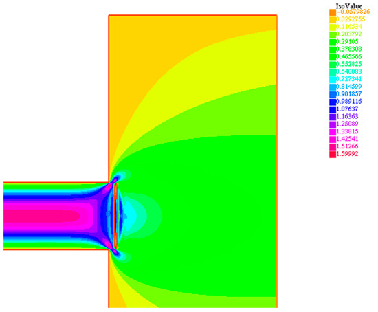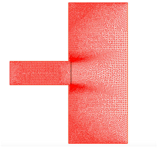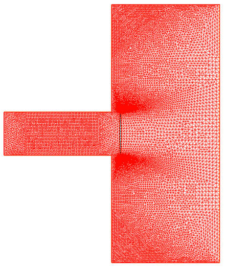 Case 1: valve operative condition with h = 3 mm; numerical model mesh for the scheme reported in Figure 2.