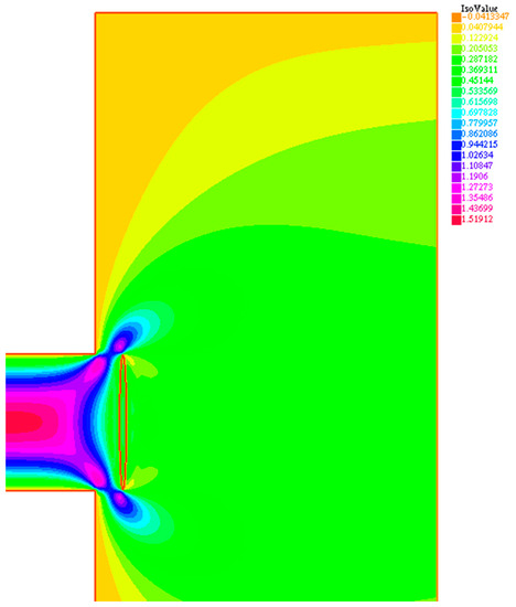 Case 1: valve operative condition with h = 3 mm, with velocity vertical component v.
