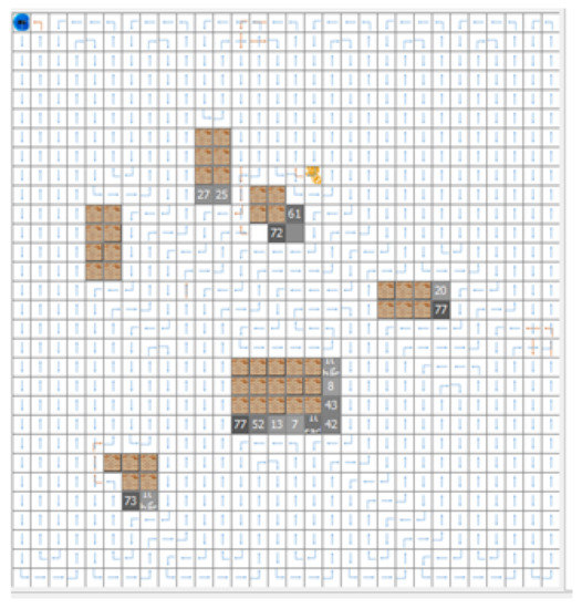 - Identify if the nodes (cells) are: (a) clear; (b) occupied by an obstacle (static or moving); or (c) are bounded by walls;