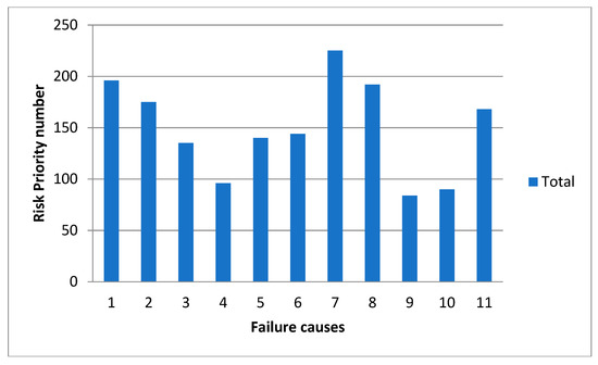 From the distribution in Figure 11, assigned numbers (1–13) had the following causes ranked by RPN.
