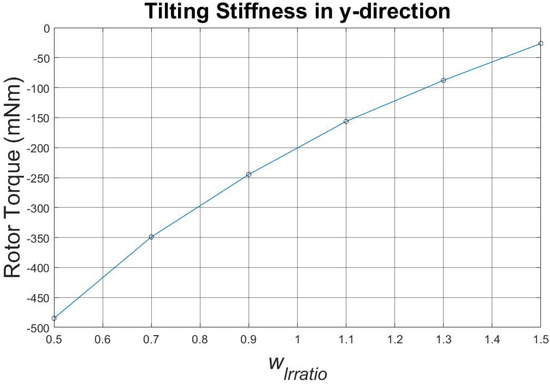 As shown in Figure 10, the motor torque is higher for higher values of the parameter , while in Figure 11, the absolute tilting stiffness is higher for lower values of the parameter. Since, for both characteristics, it is better to achieve higher absolute values, a compromise of the parameter had to be made, which set the parameter as one.