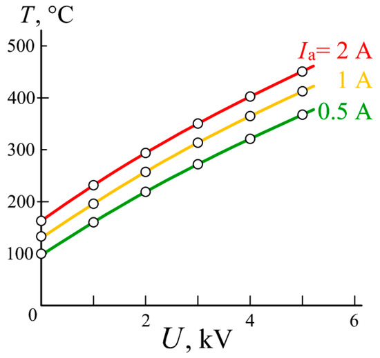At the argon pressure p = 0.2 Pa, the width of both grid sheaths exceeds the charge exchange length λc by two times. Accelerated in the sheaths, the ion turns into the fast neutral atom and leaves the sheaths with energy ε corresponding to the potential difference between the plasma and the point, where the charge exchange collisions took place. Thus, the energy of fast atoms is distributed continuously from zero to e(U + Ud). In this way, a diverging beam of fast atoms bombarding the chamber and a beam converging on the surface of rotating reamers are formed. Bombardment by fast argon atoms results in the reamers heating and etching. Their temperature is controlled using a pyrometer (Figure 3). Figure 4 presents dependence on the grid bias voltage U of the reamer temperature T at the argon pressure p = 0.5 Pa and various discharge currents Ia in the anode circuit. Each measurement was carried out in 10 min after the change of the current Ia when the temperature of the rotating reamer was already established. Figure 4 shows that the temperature T grows with current Ia and voltage U reaching T = 450 °C at Ia = 2 A and U = 3 kV.