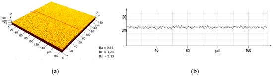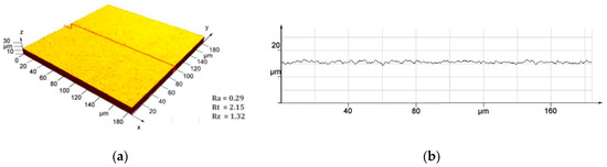 Profilograms of the hole surface machined by a reamer after combined surface strengthening: (a) 3D-profilogram of the hole surface; (b) 2D-profilogram of the hole surface.
