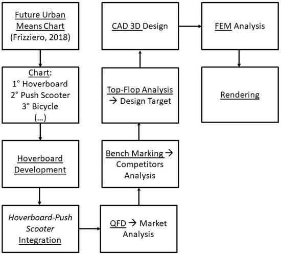 The study was motivated by a social need described by Frizziero. In 2018, Frizziero illustrated what means of urban transport will be required by users in the near future; following a survey carried out in a large sample of people living in the city of Bologna, it emerged that the preferred means for the mobility of the future are, in order, respectively, the hoverboard and the push scooter.
