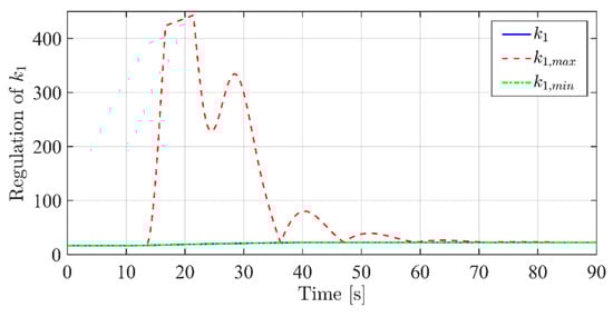 In this section, the controller tuning proposed in Section 3 is applied in order to improve the performance of the system. In particular, in the following attention is focused on keeping as constant as possible throughout the entire transient, by dynamically regulating the terms and . For this specific test case, as , the cone assumes the shape in Figure 10.