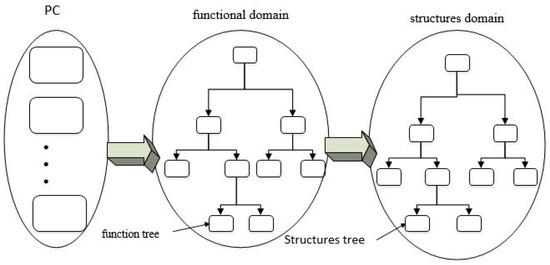 With the fuzzy, complex, and tedious relationships between PC and the product structure, inaccuracy of information mapping and loss of information occur if we directly map the PC to the product-structure domain. Therefore, considering the correspondence between product function and structure in axiomatic design [21], the functional domain is introduced as an intermediate medium between PC and product structure, guiding mapping the PC to the product domain, and completing the product-structure design of the specific PCi.