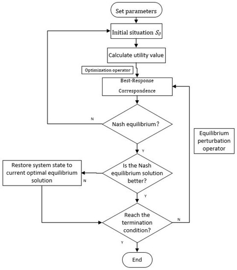 In order to ensure that the solution obtained by the EGA is globally optimal, equalization perturbation operator β is employed to break the current Nash equilibrium state reached after several iterations; then, a new Nash equilibrium state is obtained by performing the Best-Response Correspondence of each player after the balance state is sequentially broken. The specific calculation form of β is shown in Equation (12):