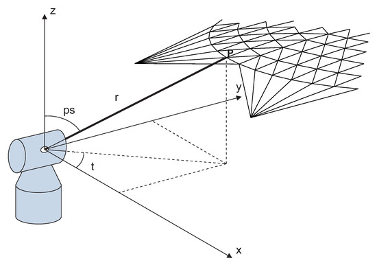Laser trackers and laser radars, alternatively, are measurement systems based on the estimation of two angles and one length, as shown in Figure 3. Two high-resolution encoders measure the azimuth () and elevation () angles, whereas the radial co-ordinate (r) relative to the center of the target is measured by means of optical interference [3]. Several types of target can be mounted, but the most widely-used is the spherically mounted retro-reflector (SMR).