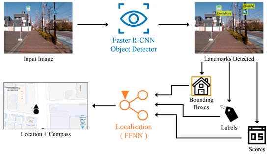 Feedforward neural network (FFNN) for localization with detected landmarks from Faster R-CNN.
