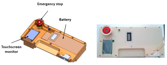 The battery that powers the RAP is located in the cover panel (Figure 5), which hosts also a touchscreen display and an emergency stop button.