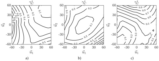 Normalized isotropy iso-curves: (a) 60 mm along , (b) 0 mm along , (c) mm along .