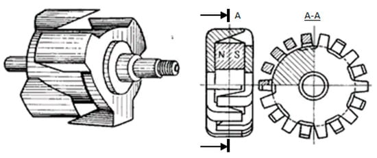 - Cristian, B.; Constantin, O.; Chiver, O.; Mircea, H.; Adina, P.V. The advantages of numerical analysis for claw pole alternator. In Proceedings of the EPE 2014 International Conference and Exposition on Electrical and Power Engineering, Iasi, Romania, 16–18 October 2014; pp. 353–357. [Google Scholar]