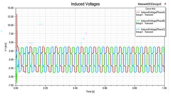 At the last stage, from the RMxprt mode, the model of the CPSM automatically transforms into a three-dimensional model using the capabilities of the Ansys Electronics Desktop program to analyze the magnetic state and finally determine the main parameters and characteristics. The results of the analysis are shown in Figure 9 and Figure 10.